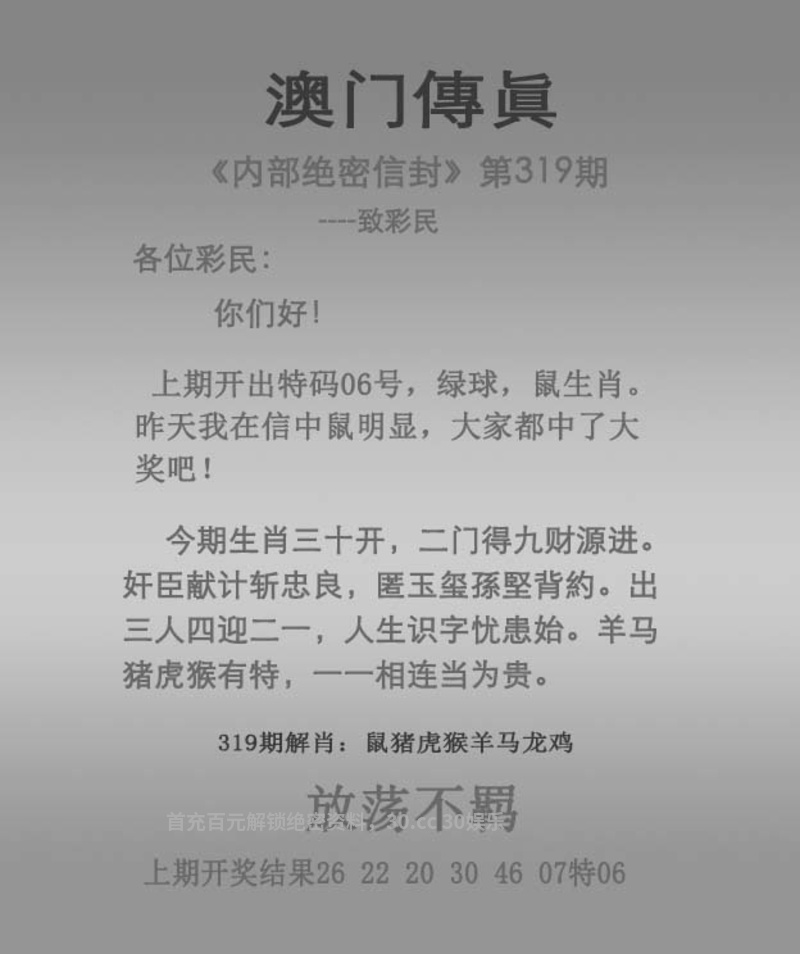 传真321期 资料准备更新 解:资料准备更新 拐特生肖:资料准备更新 主特:资料准备更新 |